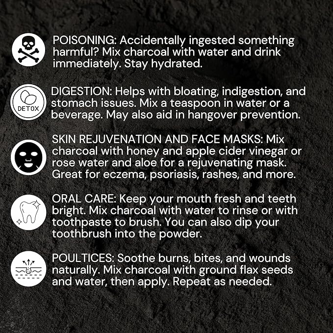 Activated Hardwood Charcoal Powder | Supports Skin, Body, Oral Health, Teeth Whitening | Dietary Supplement
