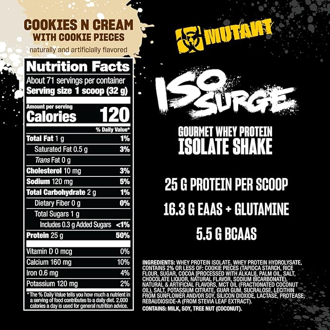 Mutant ISO Surge Whey Protein Isolate Powder Acts Fast to Help Recover, Build Muscle, Bulk and Strength, 5 lb - Cookies & Cream