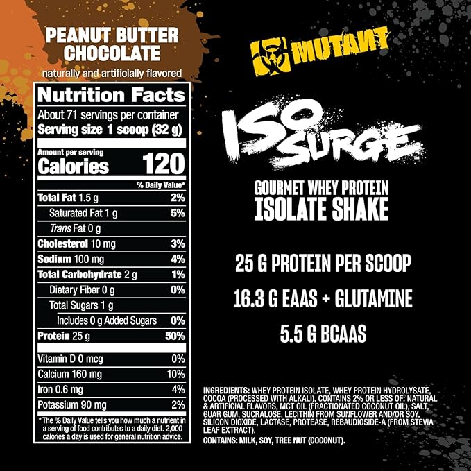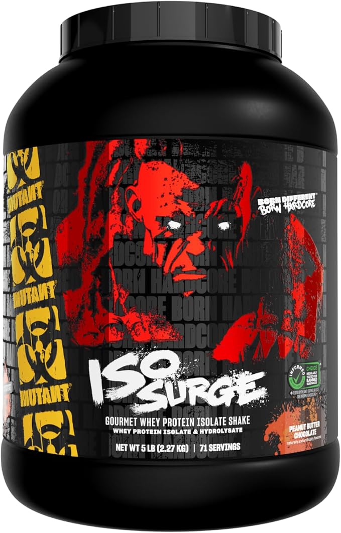 Mutant ISO Surge Whey Protein Isolate Powder Acts Fast to Help Recover, Build Muscle, Bulk and Strength, 5 lb - Peanut Butter Chocolate