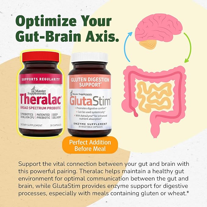 Master Supplements Theralac - 30 Capsules, Pack of 3 - Multi-Strain Probiotic for Optimal Gut Health + Gas & Bloating Relief - Gluten Free - 90 Servings