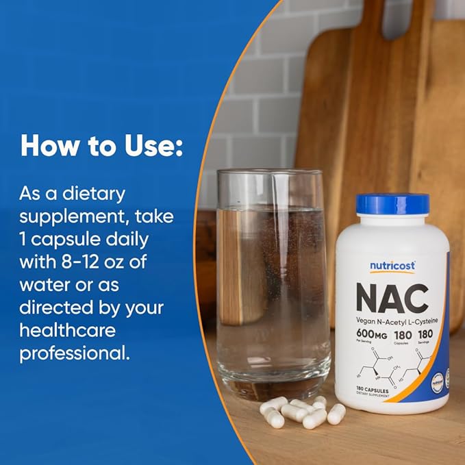 Nutricost N-Acetyl L-Cysteine (NAC) 600mg, 180 Capsules - Non-GMO, Gluten Free