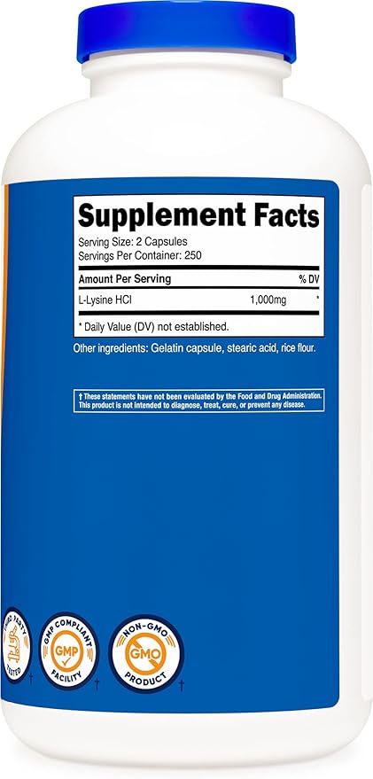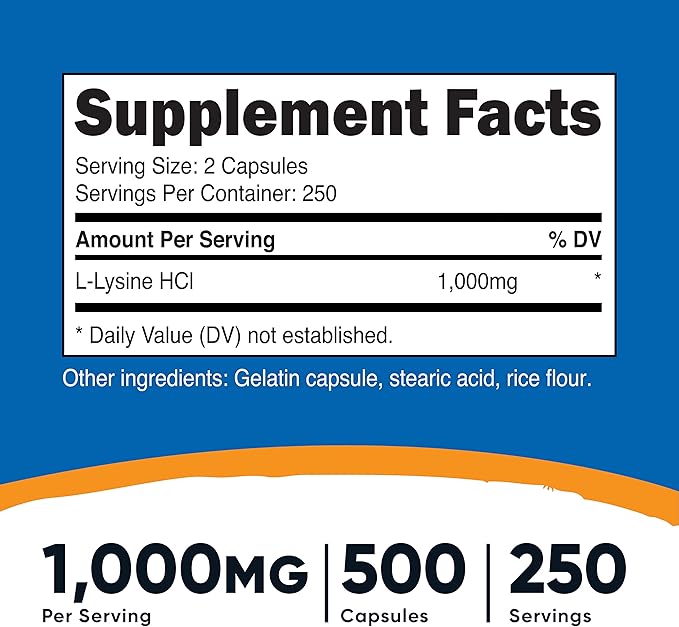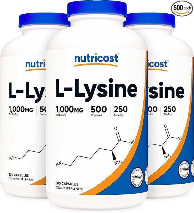 Nutricost L-Lysine 500mg (1000mg Serving), 500 Capsules (3 Bottles)