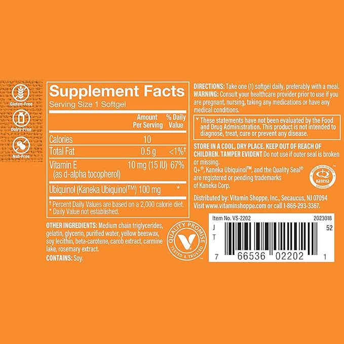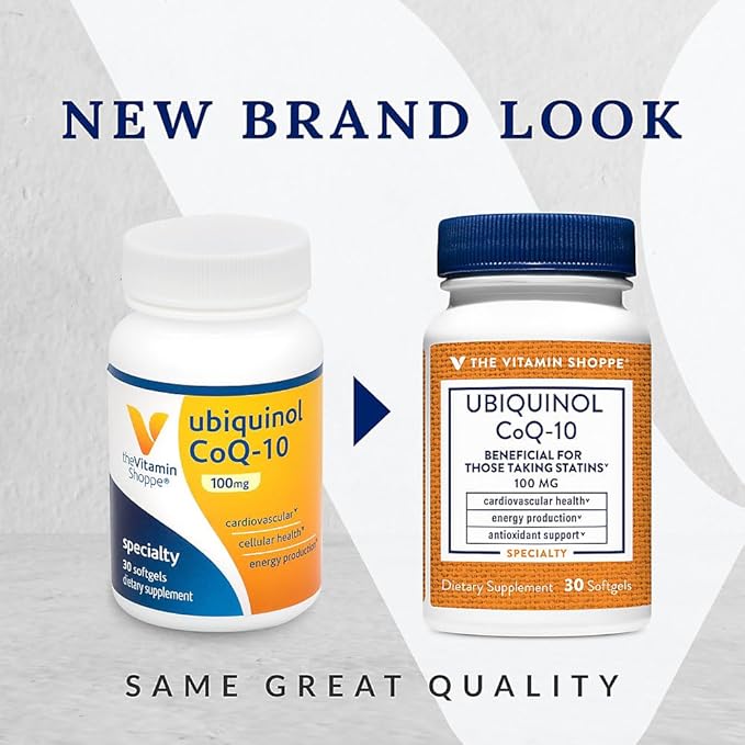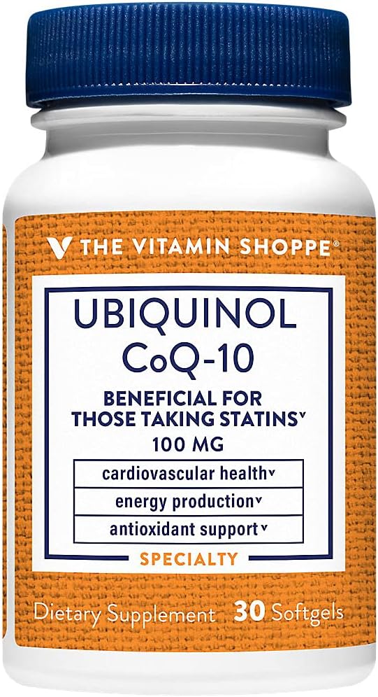 The Vitamin Shoppe Ubiquinol CoQ-10 100mg - Beneficial for Those Taking Statins – Supports Heart & Cellular Health and Healthy Energy Production, Essential Antioxidant – Once Daily (30 Softgels)