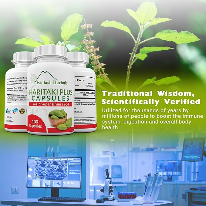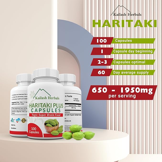 Organic Haritaki Capsules - Improves Digestion - Detoxification & Rejuvenation – Maintains Regularity - Brain Function- 100 Capsules Terminalia chebula | Vegan, Non-GMO