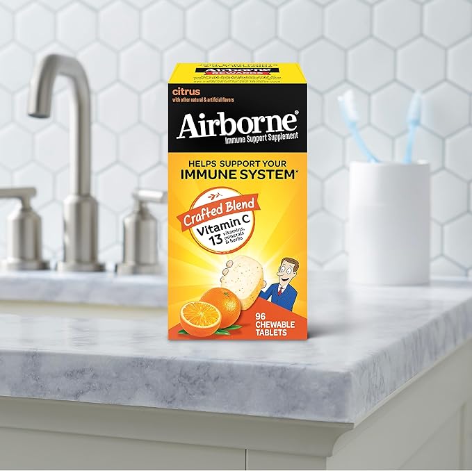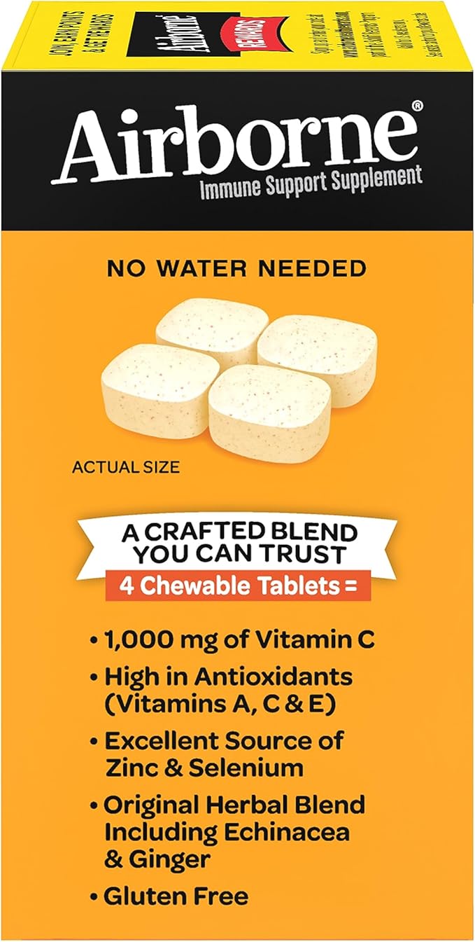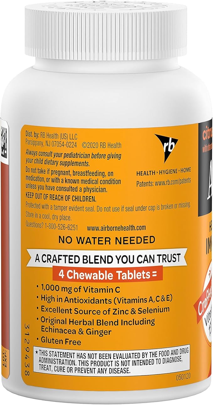 Airborne Vitamin C 1000mg (per Serving) - Citrus Chewable Tablets (96 Count in a Box) - Packaging May Vary
