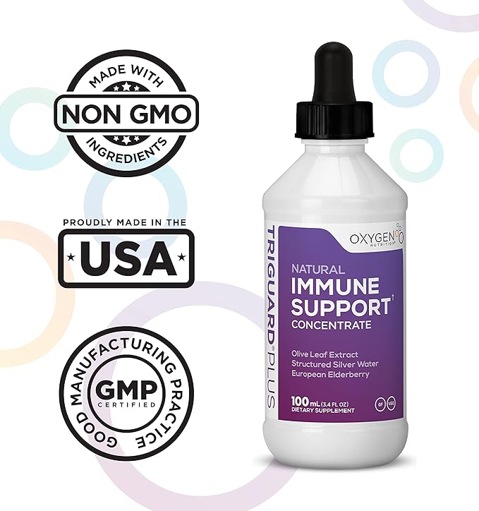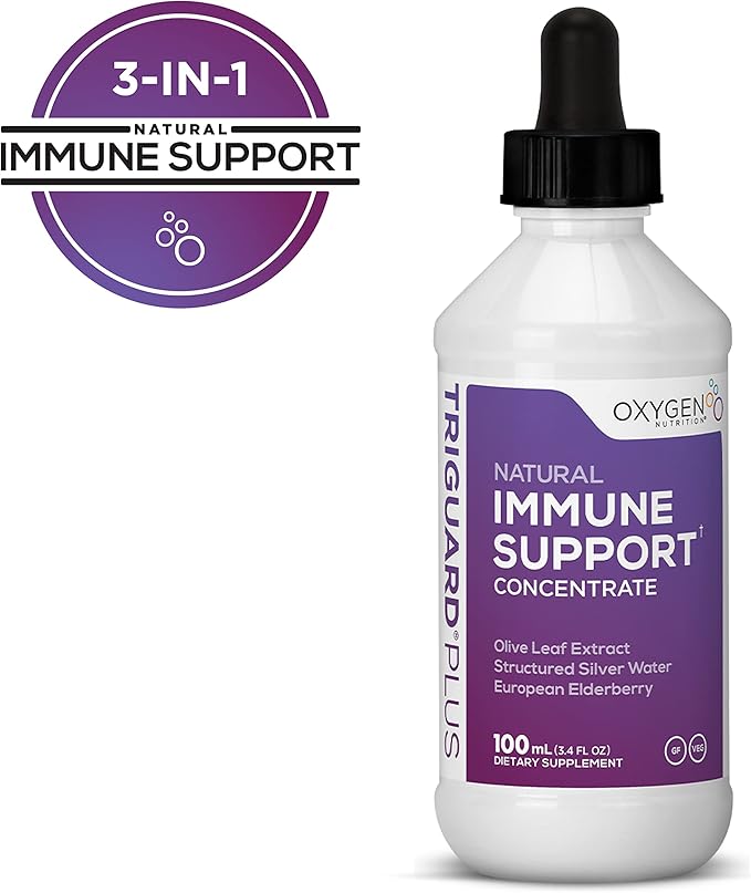 Triguard Plus Concentrate | Colloidal Silver, Sambucus Elderberry Extract & Olive Leaf Extract, 3-in-1 Liquid Immune Support | Powerful Immune System Booster | Great Taste - 3.4oz / 100ml, Made in USA