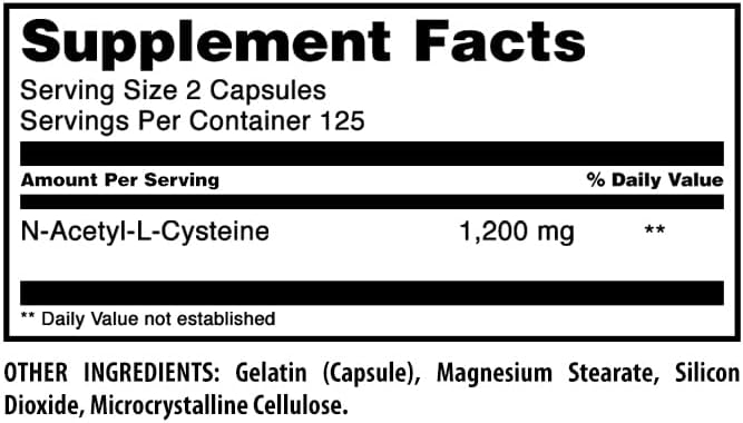 - NAC (N-Acetyl-L-Cysteine) 600mg Per Serving Supplement