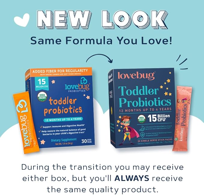 LOVEBUG Award Winning Probiotics | Constipation & Stomach Discomfort | Softer Bowel Movements | Easy-to-Take Powder | Ages 12 Months to 4 Years | 30 Packets