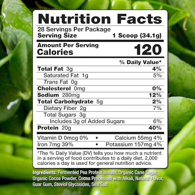 Pea Protein Powder, Vegan Chocolate Flavor, 100% Plant Based, No Artificial Sweeteners, Non GMO, Gluten Free & Soy Free, 2.11 LB