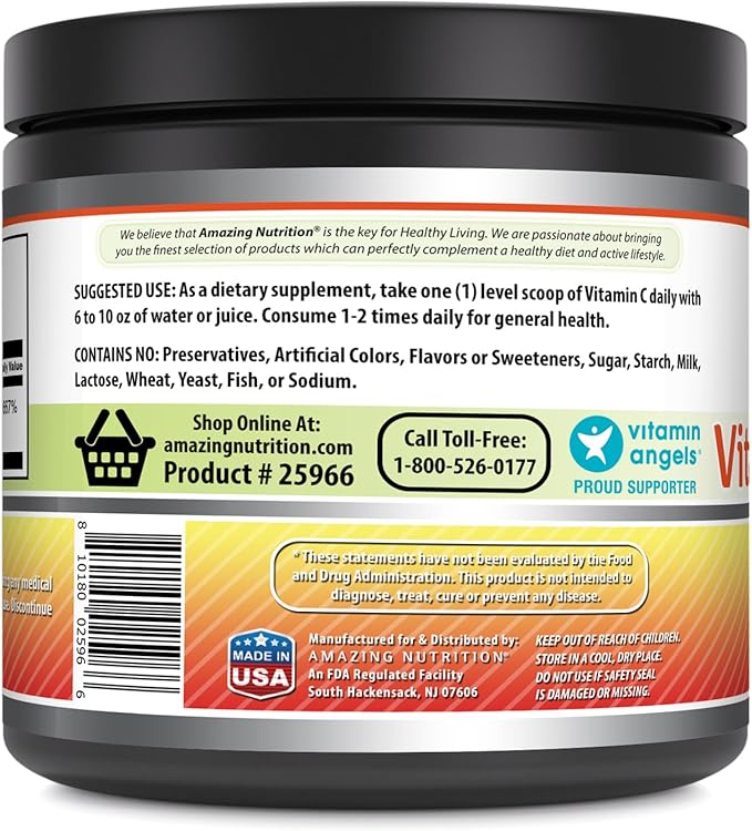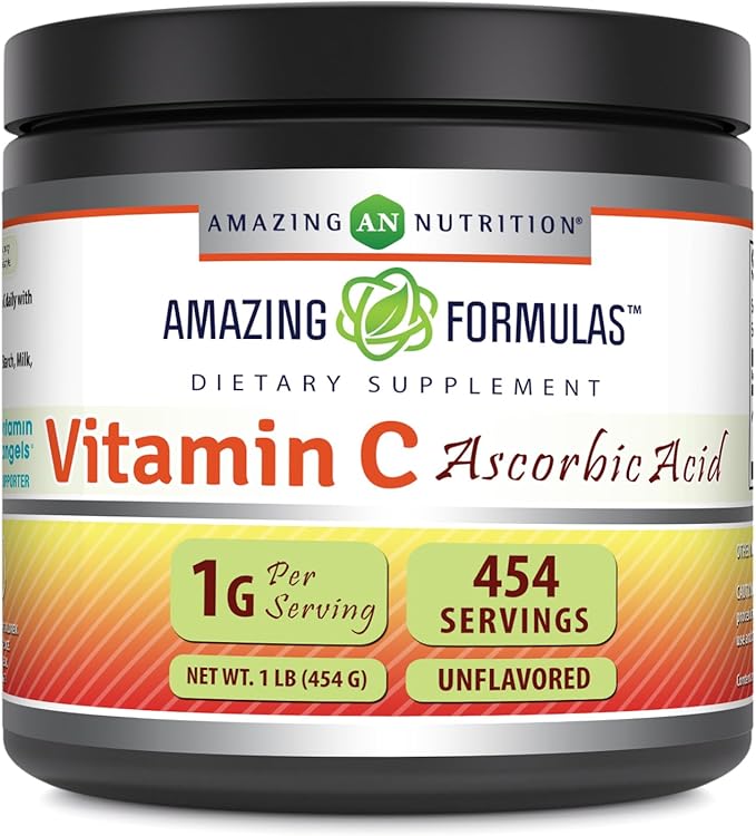 Amazing Formulas Vitamin C Powder Supplement | Unflavored Ascorbic Acid 1 Gram per Serving | 454 Servings per Container | Non-GMO | Gluten-Free | Made in USA