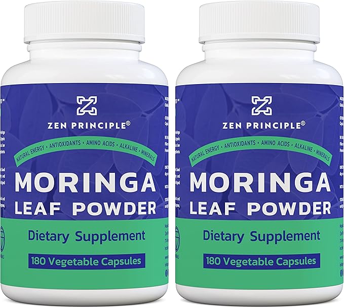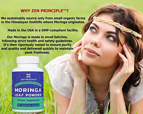 Zen Principle Organic Moringa Oleifera. Ultra-Premium. Provides an All Natural Energy Boost and Multi-Vitamin. A Raw Superfood, Vegan, No GMO and Gluten Free. 360 Capsules.