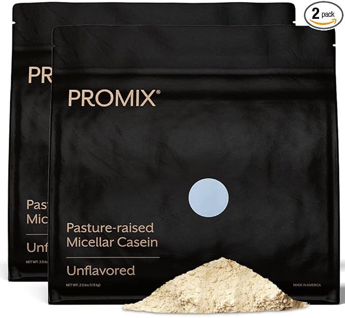 - Slow and Sustained Recovery: Promix Casein Protein Powder is a cold-processed and acid-free bioactive native casein made from milk of grass-fed cows. This unsweetened, smooth and creamy powder contains highly branched alpha/beta/kappa-proteins for a sustained release of amino acids for bedtime use, as well as sunflower lecithin for improved absorption and blending. Unflavored. 78 servings per container, 2 scoops per serving.