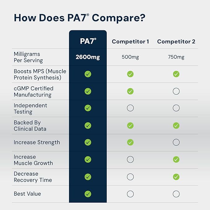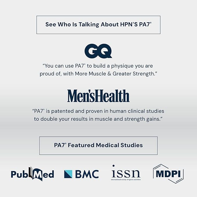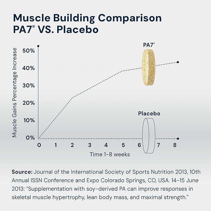 - VALIDATED THROUGH CLINICAL STUDIES - Published double blind research has shown significant benefits of PA(7). Subjects saw a 200% increase in lean muscle mass and gained 47% in bench press strength. Amino Acid absorption also increased by as much as 66.7% with ATP production rising by 18%.
