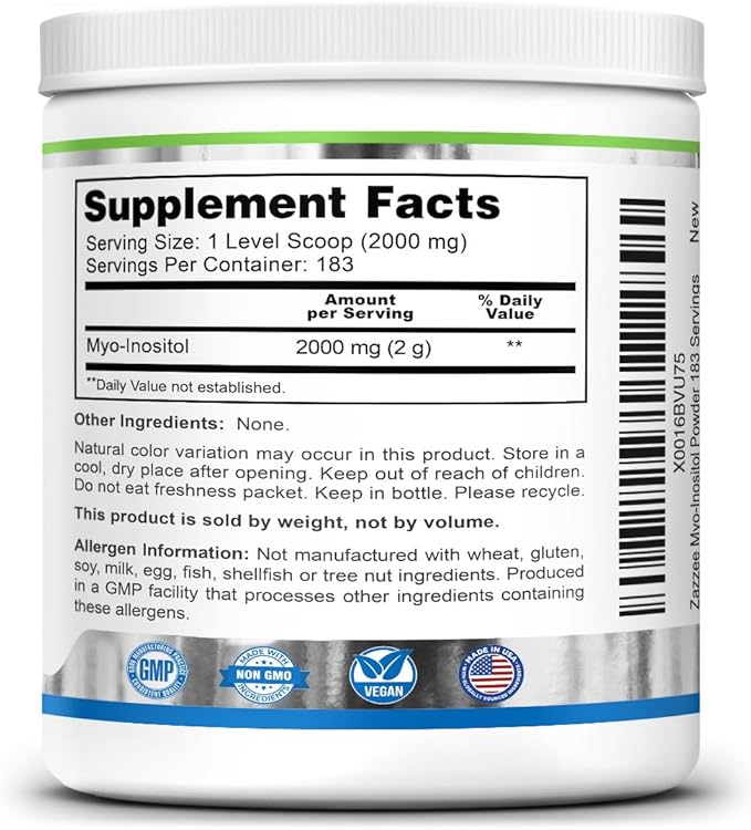 Zazzee Myo-Inositol Powder, 6 Month Supply, 183 Servings, 2000 mg per Serving, Free Scoop for Exact Dosage, 12.91 Ounces, 100% Pure, All-Natural Fertility and Reproductive Support, Vegan, Non-GMO
