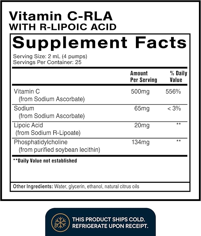- The Difference Is Clear - This liquid vitamin C product’s clear consistency can only be achieved with liposomes that are small enough to pass between cells. The smaller, more stable vesicles begin absorbing as soon as they hit the mouth.* Each 2 mL delivers 65mg of sodium, 500mg of Quali-C vit C, and 25 mg of Sodium R-Lipoate (a form of r alpha lipoic acid).