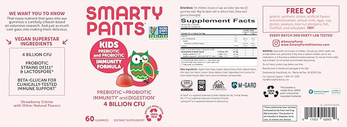 - PREMIUM SCIENCE-BACKED PROBIOTIC FORMULA FOR KIDS: SmartyPants Kids Prebiotic and Probiotic Immunity is specifically formulated with both a prebiotic and probiotic to promote digestive health and boost immune function.*