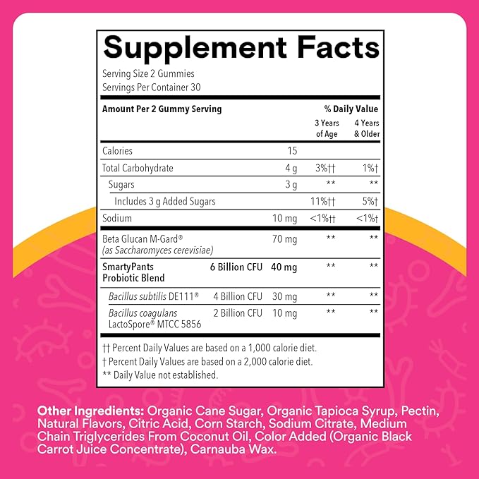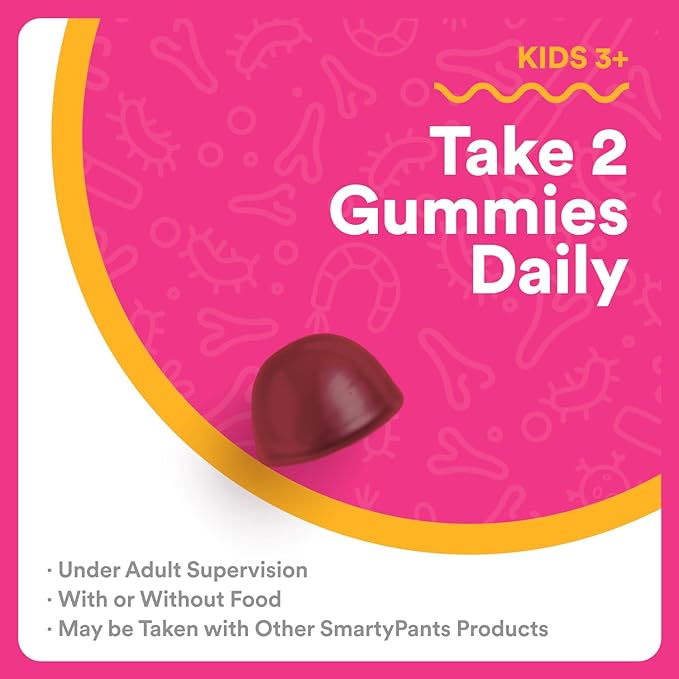 - DELICIOUS TASTE: Grape Flavor with Other Natural Flavors. For children 3 years of age or older, take two (2) gummies daily. May be taken with or without food. May be paired with SmartyPants multivitamins.