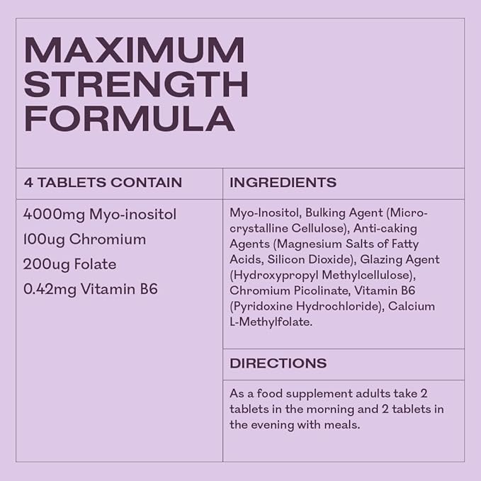 - MAX STRENGTH FORMULA - MyOva’s unique formula provides a daily dose of 4000mg myo-inositol for hormone regulation and improved ovulation*, 100ug Chromium which supports macronutrient metabolism, and 200ug Folate supplement which is easier and faster for the body to absorb than folic acid.