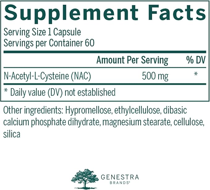 Genestra Brands Amino NAC | Vegan N-Acetyl-L-Cysteine Formula | 60 Capsules