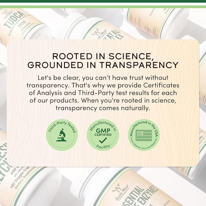 - WE BOTTLE WELLNESS: At Double Wood we provide pure, potent supplements that deliver exceptional value, all backed by careful sourcing and rigorous third-party testing