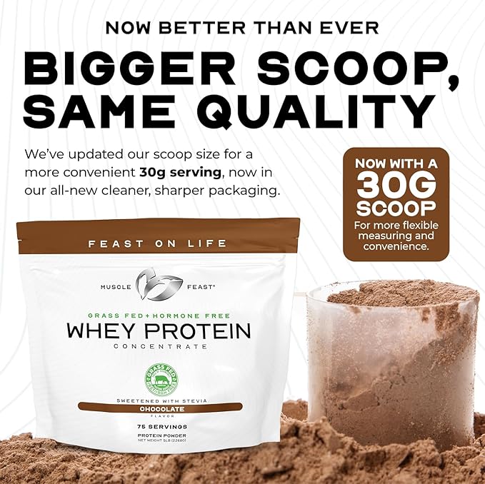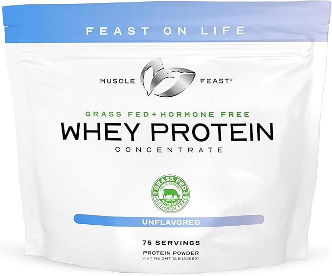 Muscle Feast Grass-Fed Whey Protein Concentrate Powder, All Natural, Hormone Free Pasture Raised Whey Protein Powder for Women & Men, Clean, Non-GMO & Gluten Free Whey Concentrate - Unflavored, 5lb