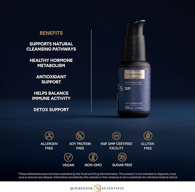 Quicksilver Scientific Nanoemulsified DIM - Liposomal DIM Supplement to Support Healthy Hormone Balance for Women & Men - Soy-Free Detox & Immune Support (1.7oz / 50ml)