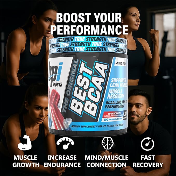 BPI Sports Best BCAA Powder - Muscle Recovery Support - Branched Chain Amino Acids | Building Blocks of Protein and Muscle - Post Workout Recovery – Hydration – Rainbow Ice, 30 Servings