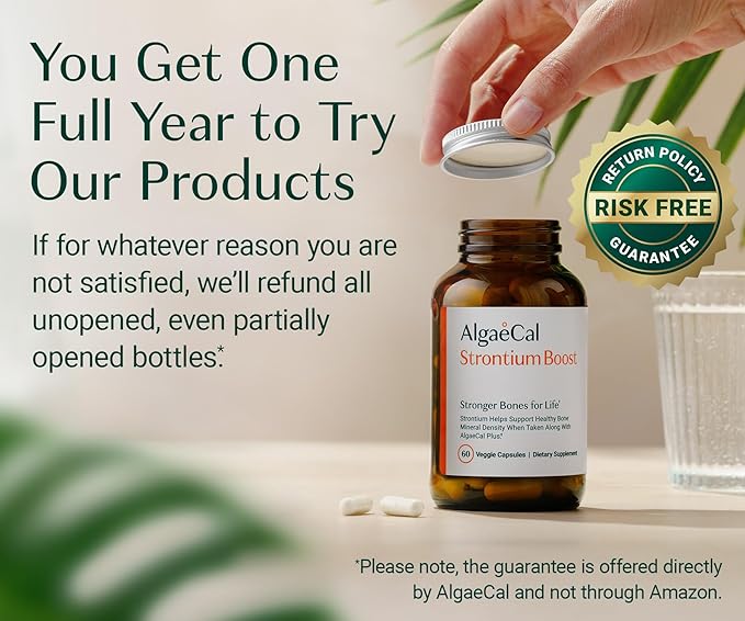 AlgaeCal - Strontium Boost, Natural Strontium Supplement for Bone Density Increase, Strontium Citrate 680 mg, Easy to Swallow for Bone Health & Bone Strength, Gluten-Free - Veggie Caps, 3 Month Supply