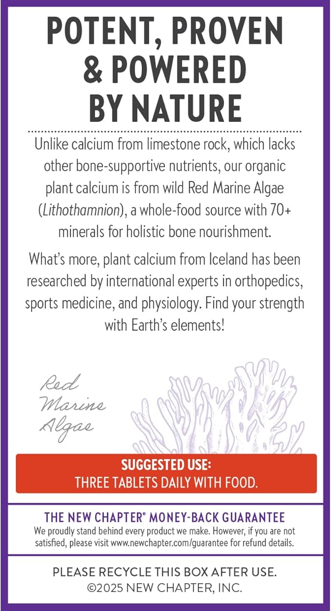 New Chapter Calcium Supplement - Bone Strength Organic Calcium with Magnesium, Vitamin D3+K2, 70+ Trace Minerals for Bone Health, Gluten Free, Easy to Swallow Slim Tablets - 120 Count