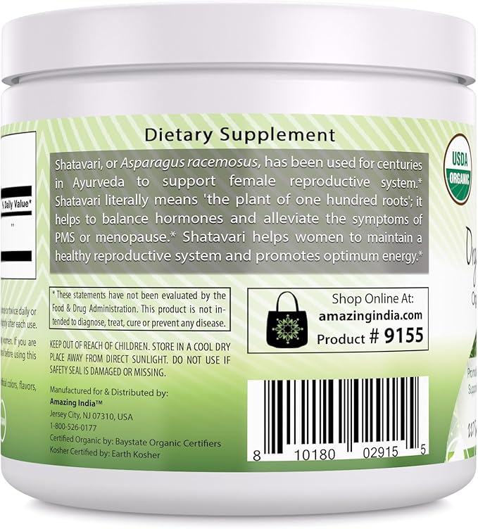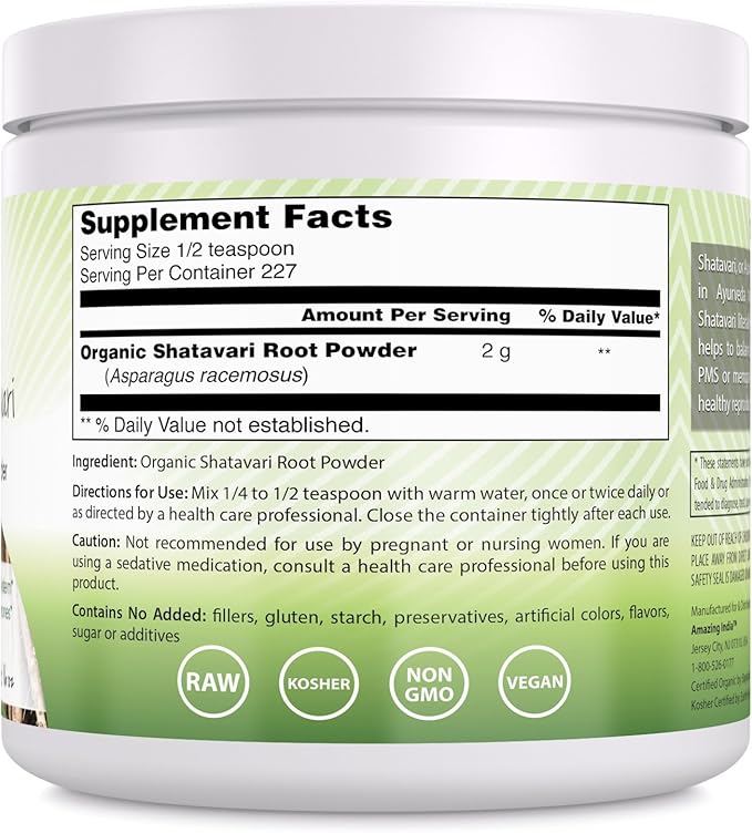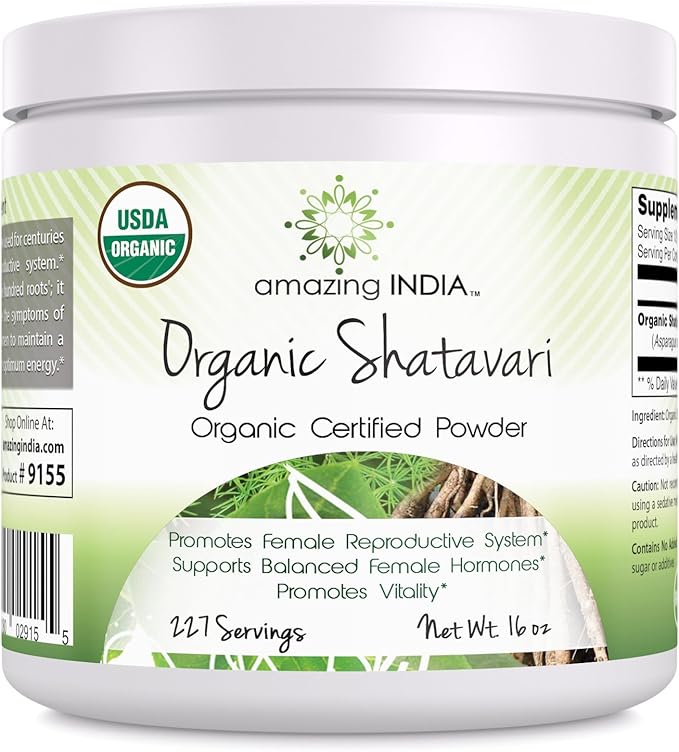 Amazing India USDA Certified Organic Shatavari Powder | 2 Grams | 227 Servings | Non-GMO | Gluten-Free | Made in USA