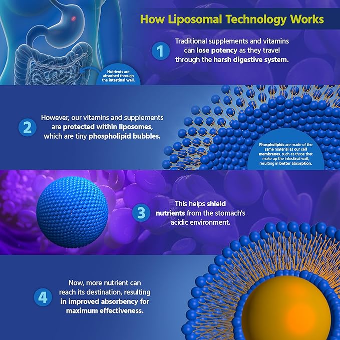 - MAXIMUM ABSORPTION LIPOSOMAL TECHNOLOGY: Unlike traditional supplements where the active ingredients get destroyed by acids in the digestive tract, Core Med Science uses Liposomal Technology to protect nutrients with a liposomal “bubble” to safely deliver nutrients into the bloodstream for optimal absorption. Provides up to 80% more absorption and is also gentler on your stomach.