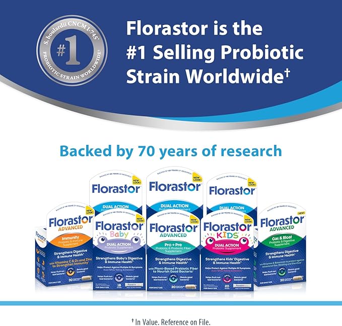 - The probiotics of choice: The number 1 selling probiotic in its class worldwide; Florastor formulas are made with ingredients that are vegetarian, gluten-free, titanium dioxide-free and appropriate for lactose intolerance