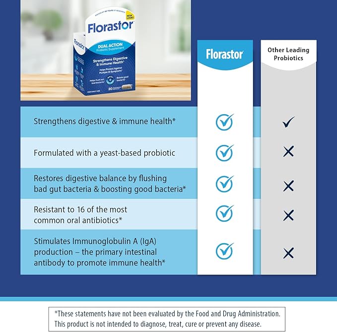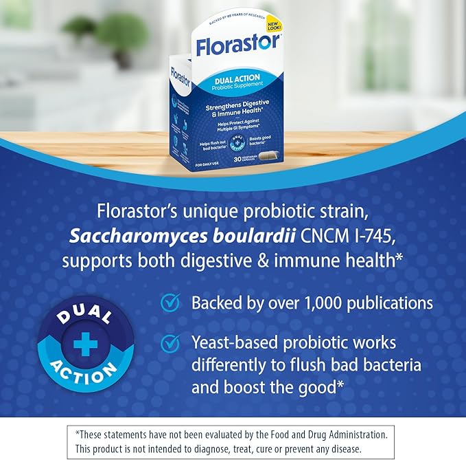 - Dual action support: Florastor probiotic helps strengthen digestive support; probiotics for women and men help flush bad bacteria and allow good bacteria to flourish; helps provide immune support and improve digestion by breaking down carbs and sugars*