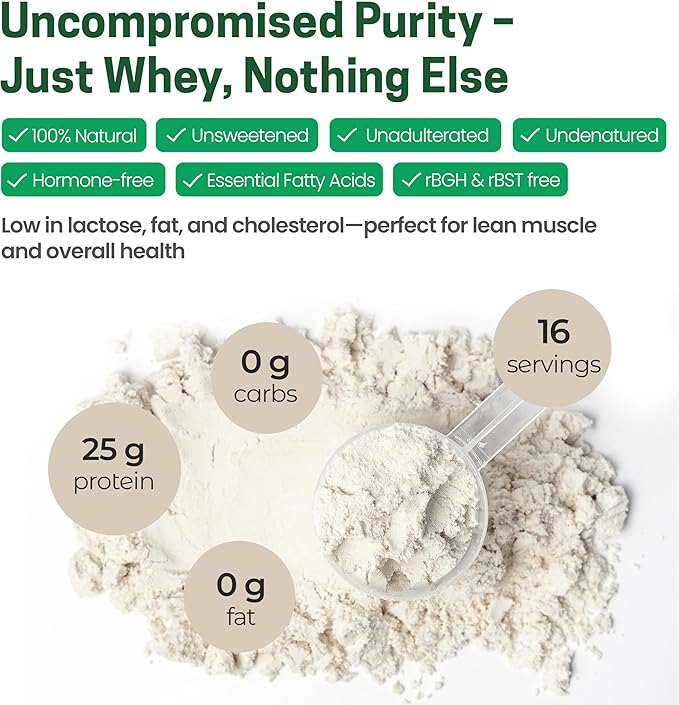 - ๐ฏ ๐ฃ๐๐ฟ๐ฒ ๐ช๐ต๐ฒ๐ ๐ฃ๐ฟ๐ผ๐๐ฒ๐ถ๐ป ๐๐๐ผ๐น๐ฎ๐๐ฒ: Our Whey Isolate Protein Powder stands out with its undenatured quality. Cold processed from raw milk, itโs only pasteurized once at 163ยฐF for 15 seconds. Unlike most whey proteins that are pasteurized twice, our unique process preserves superior protein profile, delivering high biological value, crucial amino acids and natural immune support. Free from additives and artificial sweeteners, it's your purest choice for fitness and wellness goals.