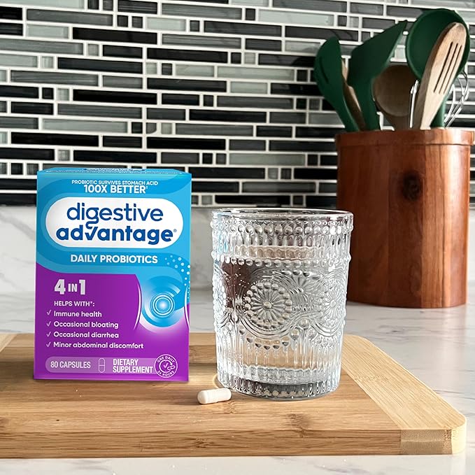 Digestive Advantage Probiotics for Digestive Health, Daily Probiotics for Women & Men, Supports Gut Health, Occasional Bloating & Diarrhea, Minor Abdominal Discomfort, & Immune Support, 80ct Capsules
