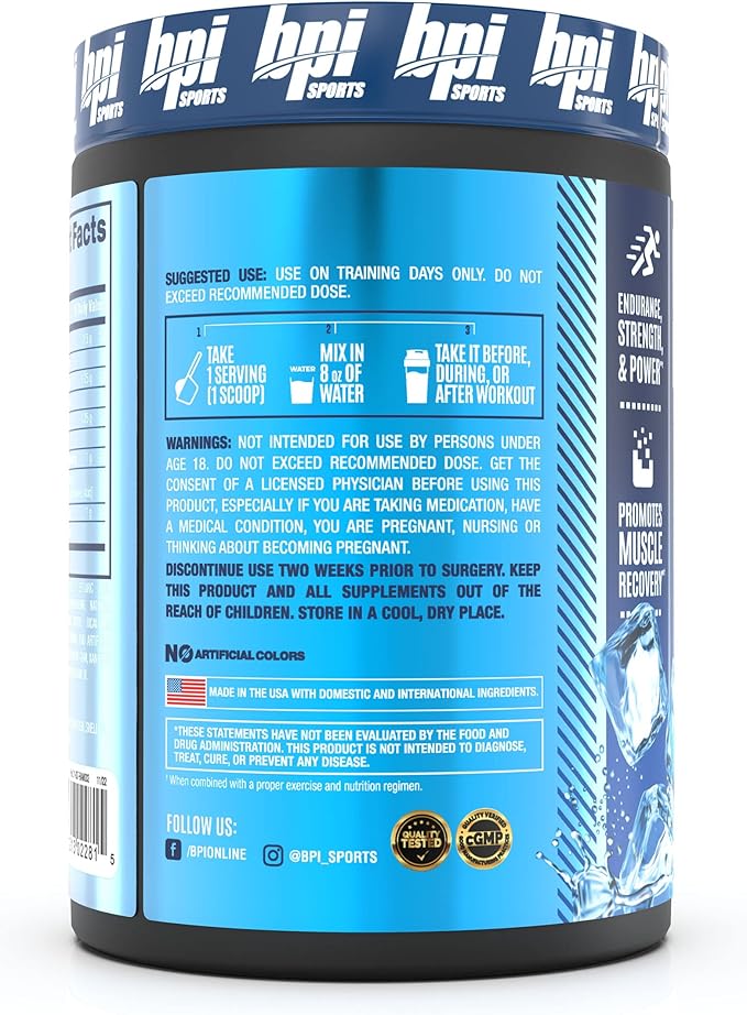 BPI Sports Best Aminos - BCAA Powder Post Workout & Glutamine Recovery Drink with Branched Chain Amino Acids for Hydration & Recovery, for Men & Women - Arctic Ice - 25 Servings