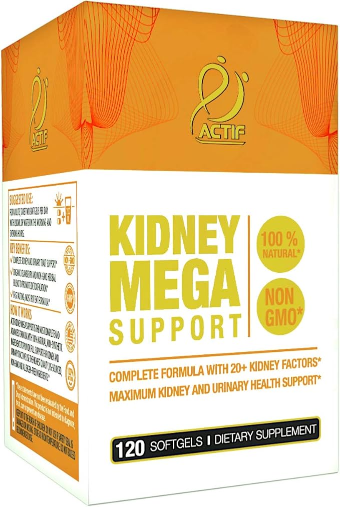 Actif Kidney Mega Support with 10+ Advanced Factors, Boosts Healthy Kidney Function, Kidney Cleanse, Non-GMO, Fast Acting, Made in USA, 120 Count