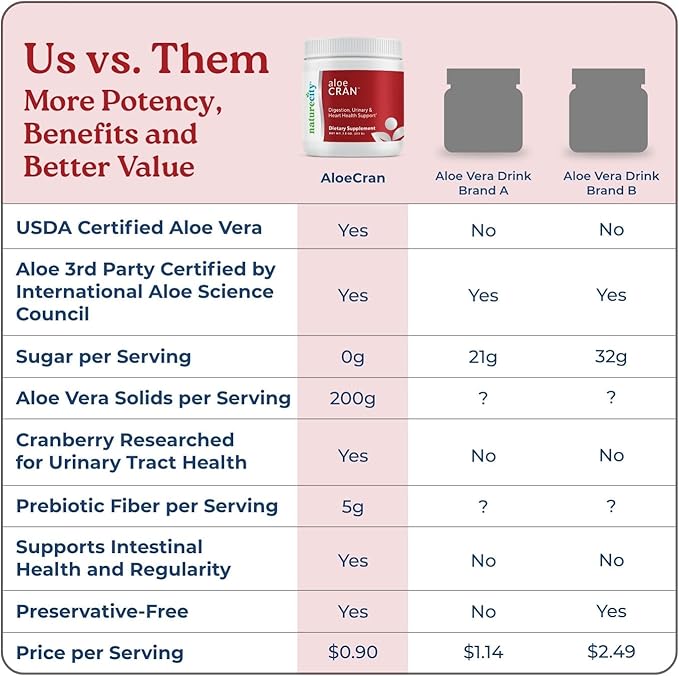NatureCity AloeCran Sugar Free Drink Mix Supplement | Pure Aloe Vera, Cranberry Powder & Dietary Fiber| Unsweetened Cranberry Concentrate | Supports Digestive, Urinary & Metabolic Health | 60 Servings