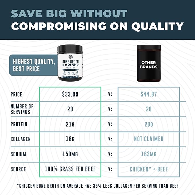 - HOW TO BLEND: For best results, add the powder after all other ingredients are combined, then blend on a low setting to minimize foaming. You can also whisk it directly into hot water for a quick and smooth mix. Our single-ingredient, high-protein bone broth powder (over 95% protein per serving) delivers a clean, subtle beef flavor with no fillers, sweeteners, or artificial additives. It's perfect as a savory soup base or seamlessly blends into coffee, smoothies, and more.