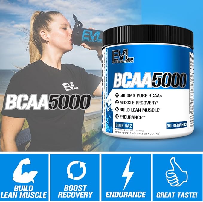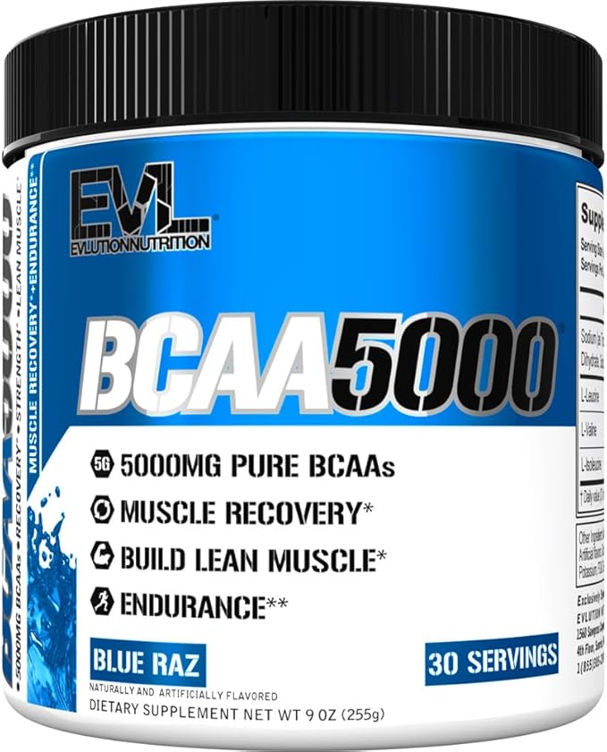 Evlution EVL BCAAs Amino Acids Powder - BCAA Powder Post Workout Recovery Drink and Stim Free Pre Workout Energy - 5g Branched Chain Amino Acids Supplement for Men - Blue Raz
