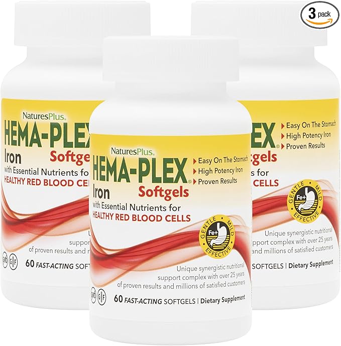 NaturesPlus Hema-Plex Iron - 60 Fast-Acting Softgels - 3 Pack - 85 mg Iron + Vitamin C & Bioflavonoids for Healthy Red Blood Cells - Gluten Free - 60 Total Servings