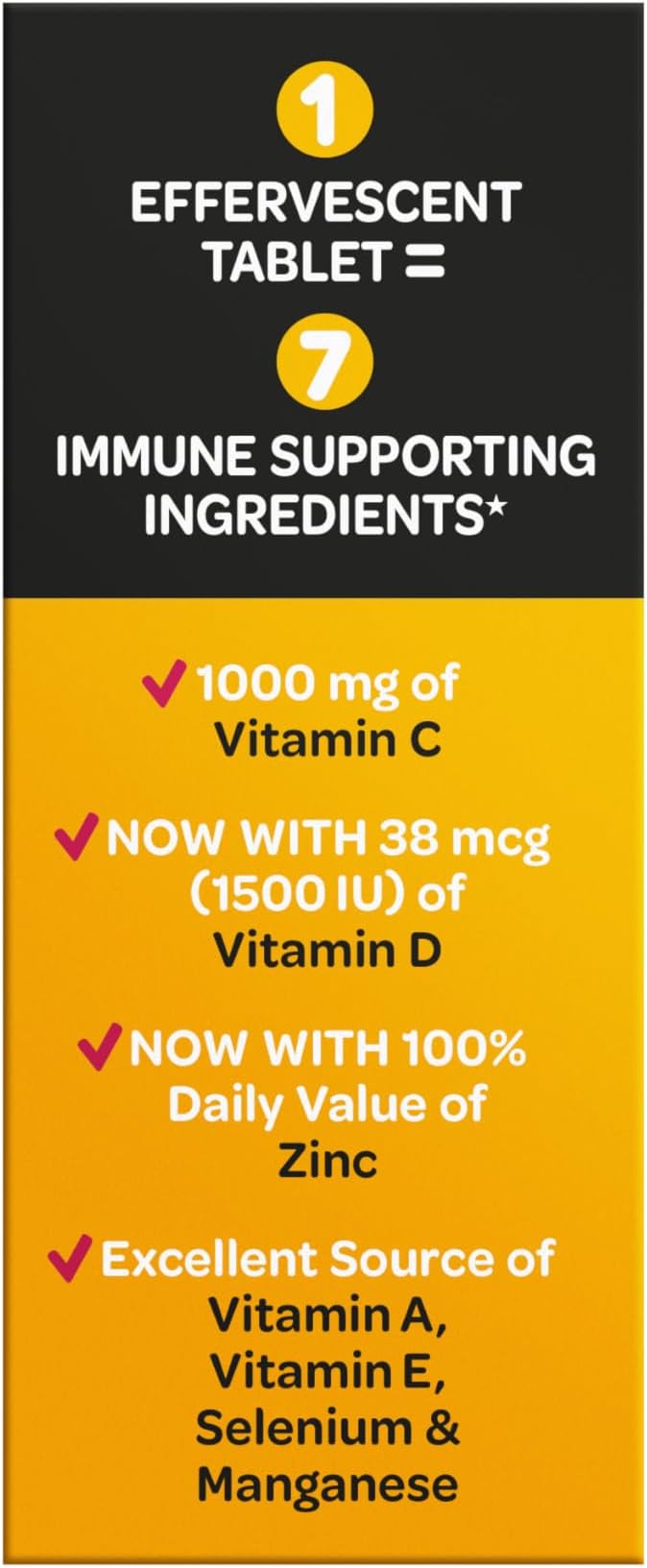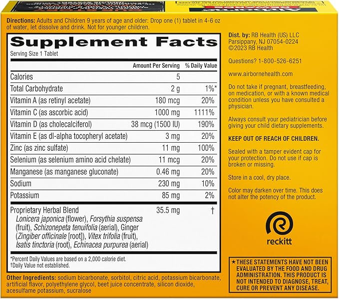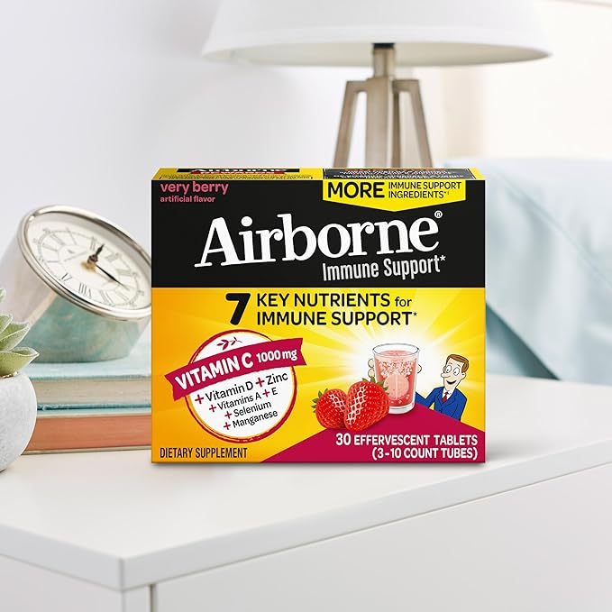 - VITAMIN C 1000mg: Airborne immune support effervescent tablets are packed with 1000mg Vitamin C per serving, which helps support your immune system.