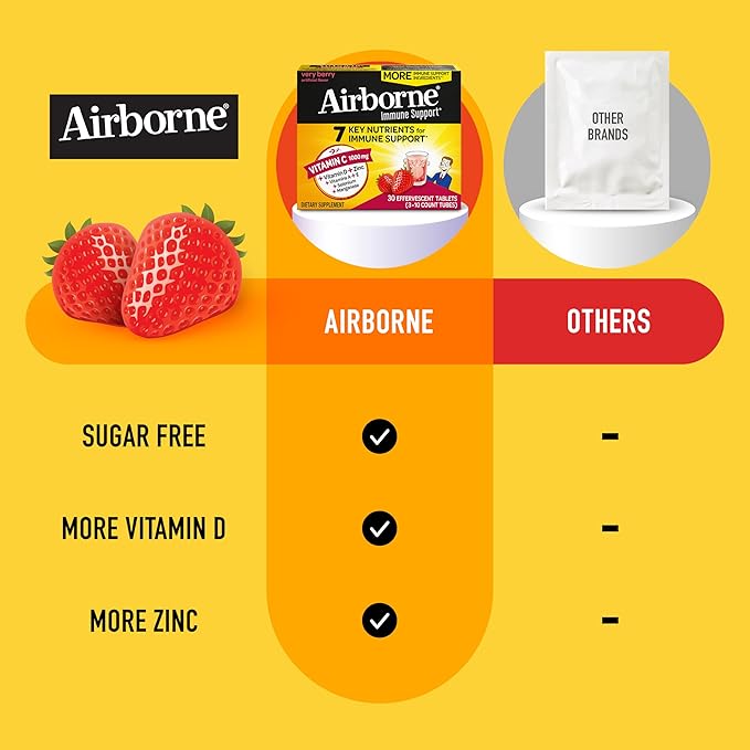 - NUMBER ONE IMMUNE SUPPORT EFFERVESCENT BRAND: Airborne is the Number 1 Immune Support Gummy, Effervescent & Chewable Brand (Based on unit sales L52W through 7/24/2024).
