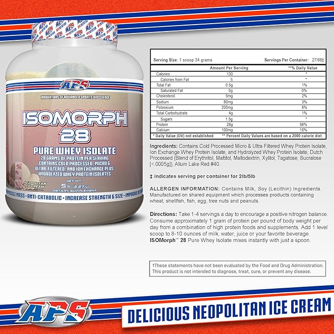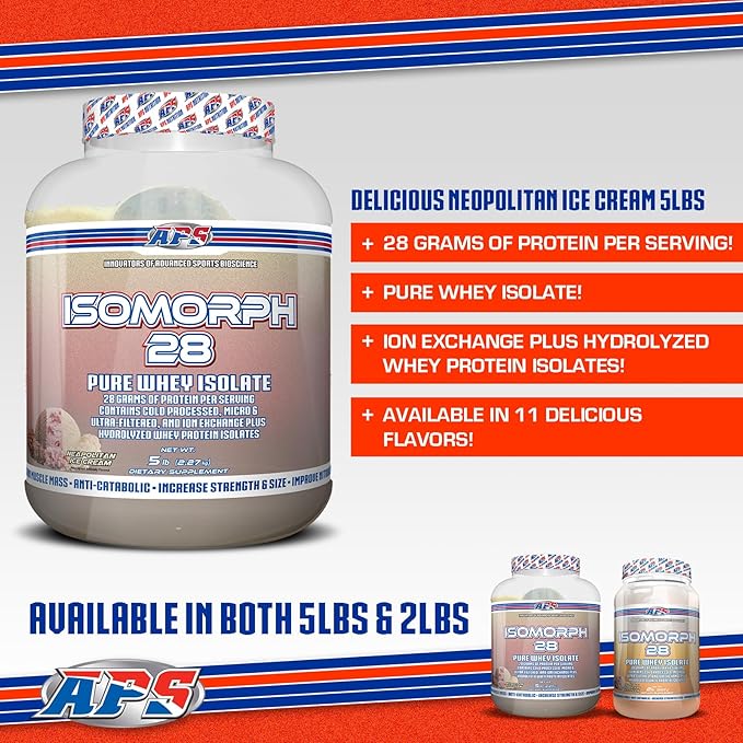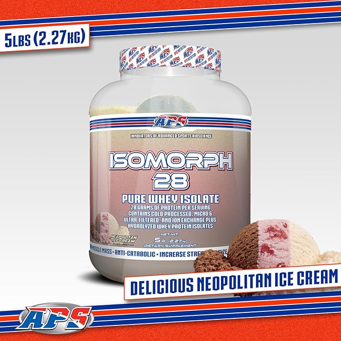 APS Nutrition Isomorph 28 Protein Powder | Pure Whey Isolate | Cold Pressed, Ultra- Filtered, & Ion Exchange Isolates | 28g Protein | 5 Pound (Neapolitan Ice Cream)