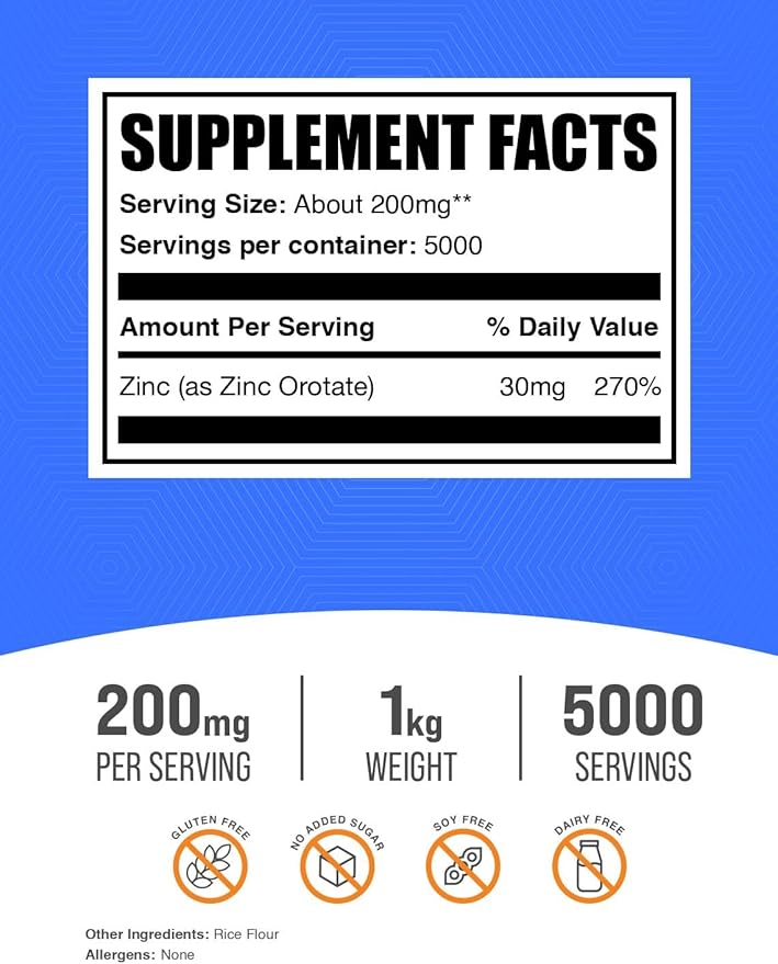 - Elevate your Nutritional Balance: With our Zinc supplement, you can supplement your diet with essential nutrients that support overall health. Zinc, in Zinc Ororate powder, plays a critical role in nutrient absorption and action, ensuring your body gets the most out of every meal.