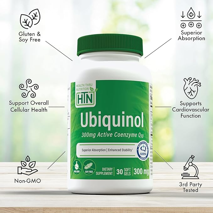 Health Thru Nutrition Ubiquinol 300mg 30 Softgels as Kaneka QH Reduced CoQ-10 | Stabilized - 3rd Party Tested | Enhanced Bioavailability | Cardiovascular & Mitochondria Function Support | Non-GMO