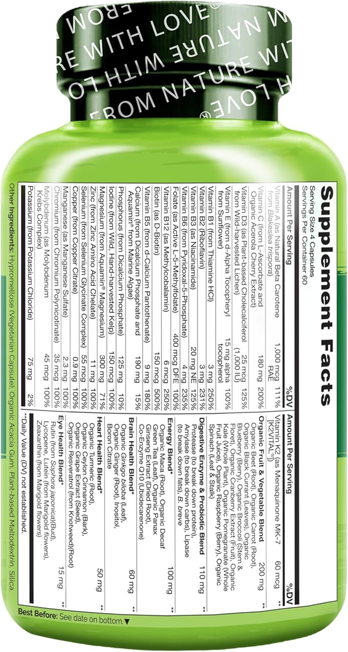 - COMPLETE MULTIVITAMIN FOR MEN: The Naturelo Whole Food Multivitamin for men, a renowned multi vitamins option, is formulated with a blend of organic fruits and vegetables along with essential vitamins and minerals to support health and wellbeing.*