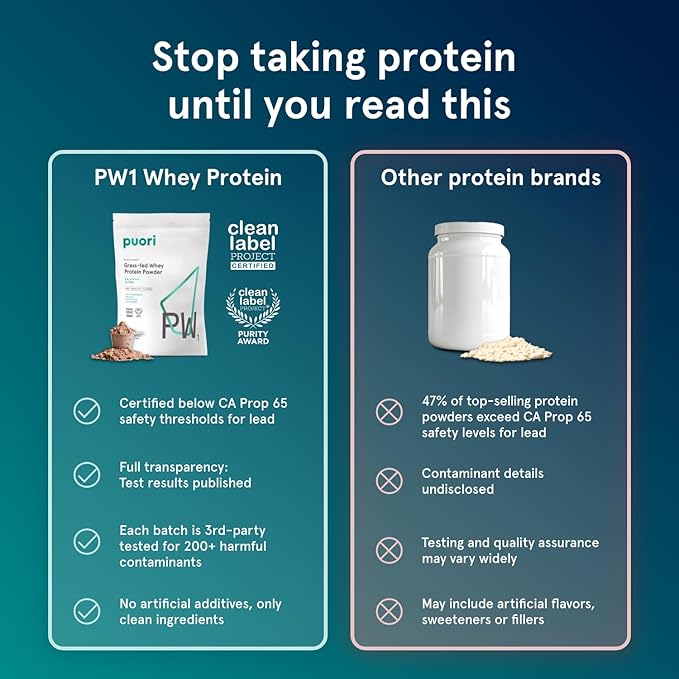 Puori Whey Protein Powder - Dark Chocolate - PW1 Pasture Raised, Grass-Fed & Non-GMO - 100% Natural and Pure for Muscle Growth - 21g Protein 1.98lbs - Gluten-Free