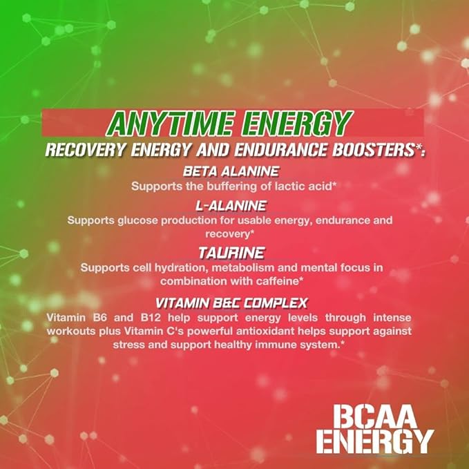 - Science Based Formula - Try the EVL BCAA Energy branch chain amino acids supplements for men and women with 5g of the ideal 2:1:1 ratio of branched chain amino acids plus Beta Alanine and more