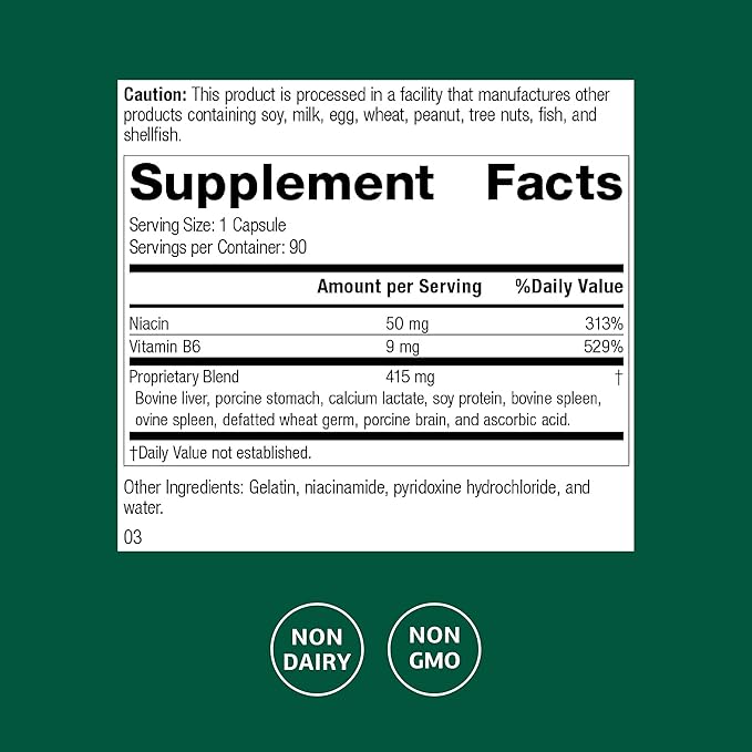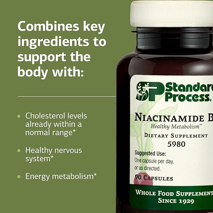 Standard Process Inc. Niacinamide B6 - Whole Food Energy, Metabolism and Nervous System Supplements with Soy Protein, Vitamin B6, Ascorbic Acid, Calcium Lactate, and Niacinamide - 90 Capsules